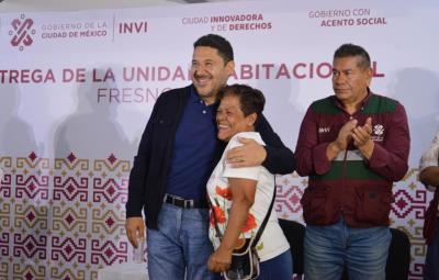 CIUDAD DE MÉXICO.- El Jefe de Gobierno, Martí Batres, destacó la culminación de un proyecto de reubicación histórico en la Ciudad de México, al entregar la Unidad Habitacional Fresno 409 en la colonia Atlampa, alcaldía Cuauhtémoc. Más de mil personas que residieron por más de tres décadas en nueve campamentos irregulares ahora contarán con un entorno digno para vivir.