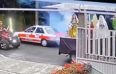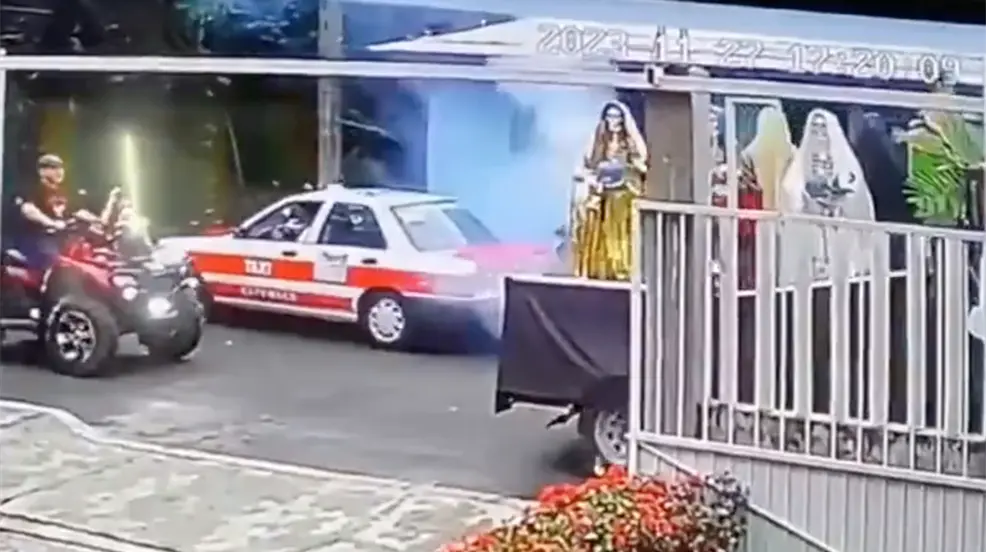 Las cámaras de seguridad captaron el momento exacto en el que se produjo la detonación en un vehículo que transportaba diversos artículos para el evento, el cual estaba siendo organizado por practicantes de la santería en el sur de Veracruz.