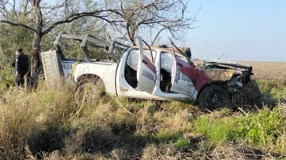 De acuerdo a la Vocería de Seguridad Pública, aproximadamente a las 08:00 horas se reportó volcadura de una unidad de la Guardia Estatal en la carretera Reynosa-San Fernando a la altura del ejido Periquitos.