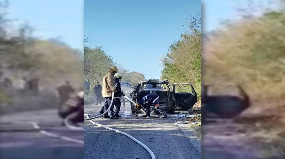 Autoridades atienden incendio de vehículo en carretera de Yucatán