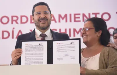 CIUDAD DE MÉXICO.- El jueves 5 de septiembre , el Jefe de Gobierno, Martí Batres Guadarrama, encabezó la firma de los Convenios de Ordenamiento Territorial que beneficiarán a más de 7 mil familias en 40 asentamientos consolidados en la zona cerril de Xochimilco. La iniciativa marca un hito en el proceso de regularización de terrenos irregulares, brindando certeza jurídica a los habitantes y avanzando en la protección del suelo de conservación.