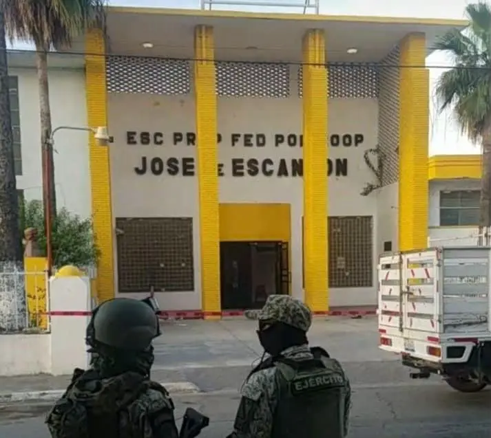 REYNOSA, Tamaulipas.- La comunidad educativa de la Preparatoria José de Escandón, ubicada en la calle Pedro José Méndez en la zona centro de Reynosa, vivió momentos de tensión y preocupación tras el hallazgo de una granada de fragmentación en las inmediaciones del plantel.