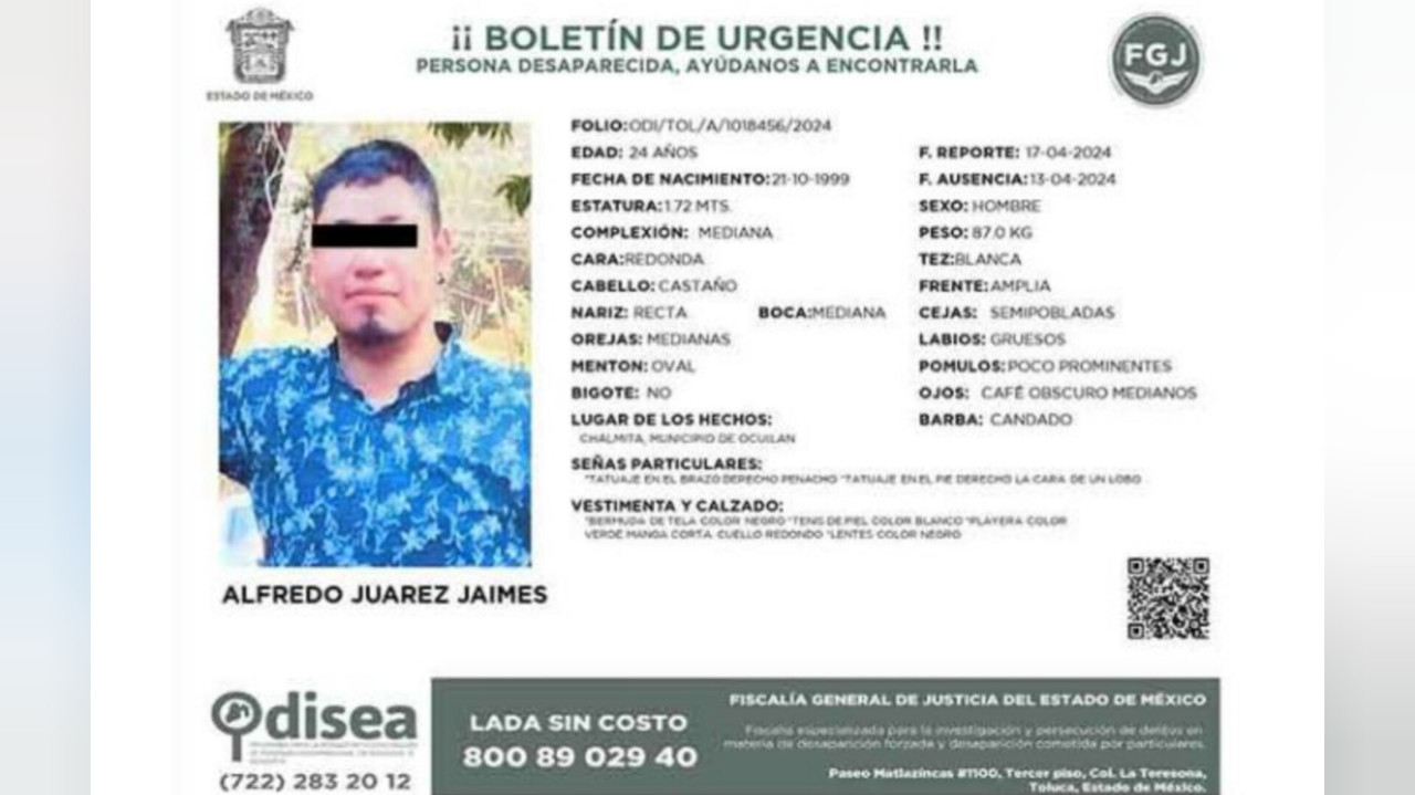 MALINALCO, Estado de México.- En Malinalco, Estado de México, se ha encontrado sin vida a un hombre que había sido reportado como desaparecido. La víctima, identificada como Alfredo, de 24 años de edad, fue visto por última vez el pasado sábado 13 de abril en la comunidad de Chalmita, en el municipio de Ocuilan.