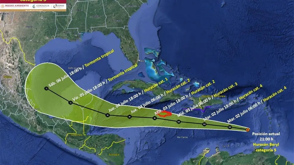 LA PAZ, Baja California Sur.- El huracán Beryl, el segundo ciclón de la temporada en el Océano Atlántico, se ha intensificado rápidamente a categoría 5 y avanza sobre el Caribe, poniendo en alerta a los gobiernos de diversos países.