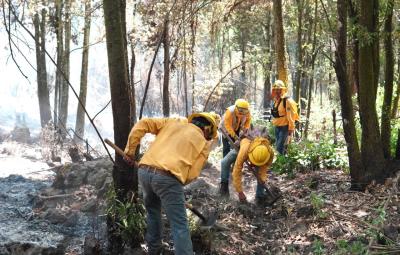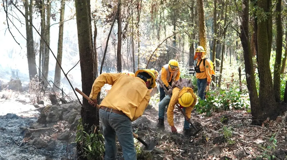 Probosque y sus brigadistas implementan brechas cortafuego para combatir incendios forestales.