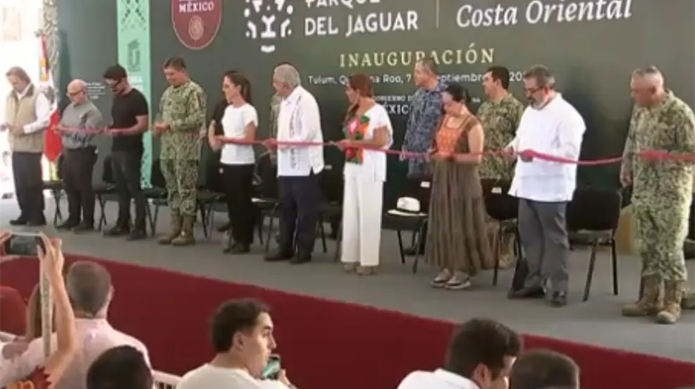 Este sábado 7 de septiembre en Tulum, se llevó a cabo la inauguración del Parque del Jaguar y el Museo de la Costa Oriental. Durante la conferencia de prensa, la presidenta Claudia Sheinbaum y el mandatario Andrés Manuel López Obrador llevaron a cabo la apertura de ambas obras. La ceremonia contó con la presencia de la mandataria y el funcionario que destacó la labor de los ingenieros militares.