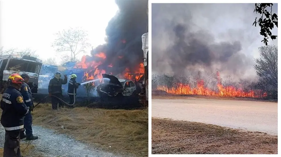 Incendio en corralón de Kanasín consume 46 vehículos en la vía Mérida-Chetumal