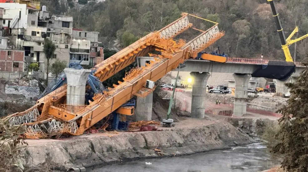 Incidente en Tren Interurbano México-Toluca: cae maquinaria de 800 toneladas