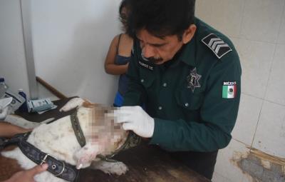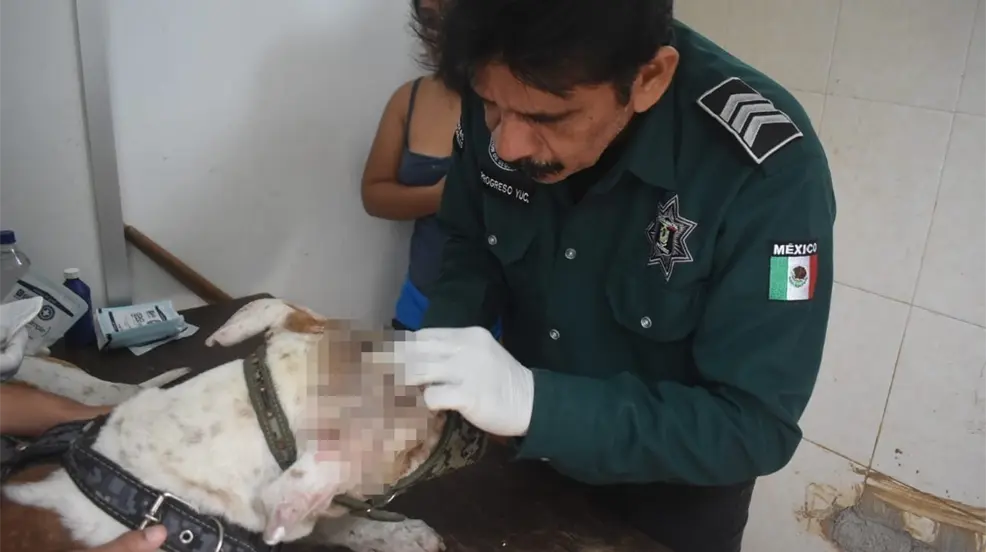 El veterinario de la Policía Ecológica, Diego Herbert Novelo Borges, atendió a 'Máx', curando sus heridas en la cabeza y asegurando un monitoreo constante en colaboración con su dueña. Además, se anunció que la propietaria del pitbull presentará una denuncia ante la Fiscalía General del Estado para que se castigue al responsable de estas brutales lesiones.