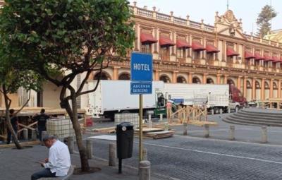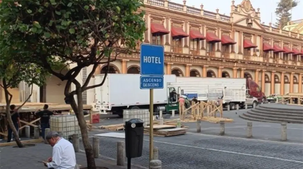 Instalan templete en plaza central de Xalapa; evento de Rocío Nahle y Sheinbaum