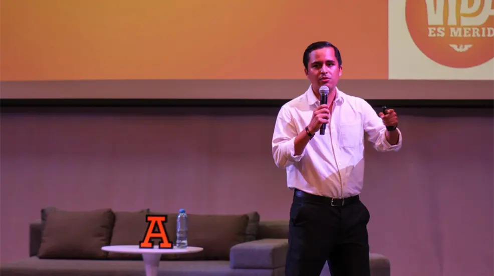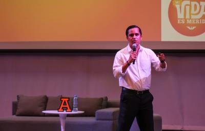 MÉRIDA, Yucatán.- Gerardo Ocampo Castro, el candidato de Movimiento Ciudadano a la alcaldía de Mérida, presentó sus propuestas de trabajo a estudiantes de la Universidad Anáhuac Mayab, con el fin de impulsar el crecimiento ordenado de la capital yucateca; basado en tres ejes fundamentales, servicios públicos, seguridad y medio ambiente.