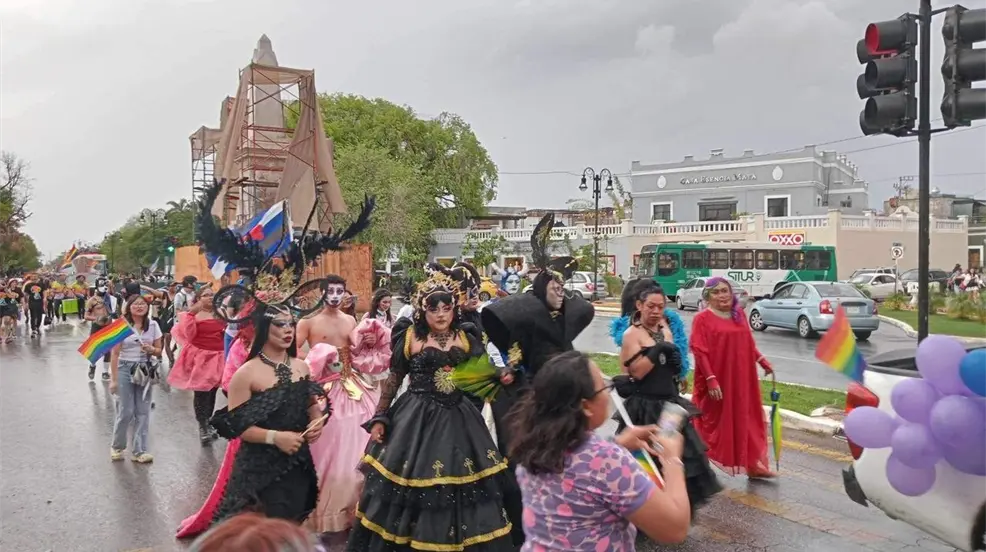 La fuerte lluvia no fue ningún impedimento para que los asistentes llenaran las calles del centro de Mérida de colores, plumas y lentejuelas para celebrar la diversidad sexual que existe, y para exigir de manera pacífica sus derechos que por años han sido vulnerados y discriminados por la sociedad.