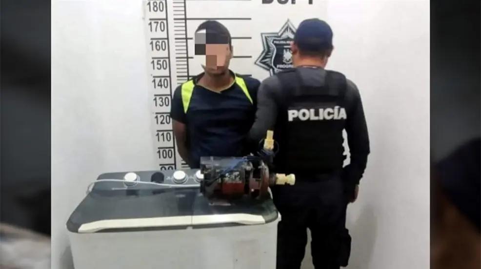 MÉRIDA, Yucatán.- La policía en Progreso logró la detención de un individuo implicado en el robo de valiosos electrodomésticos de un hogar en la colonia Benito Juárez. Gracias a la rápida acción de la víctima, quien alertó a las autoridades inmediatamente después de descubrir el robo mediante sus cámaras de seguridad, fue posible no solo capturar a uno de los sospechosos, sino también recuperar los objetos sustraídos: una lavadora y una bomba de agua.
