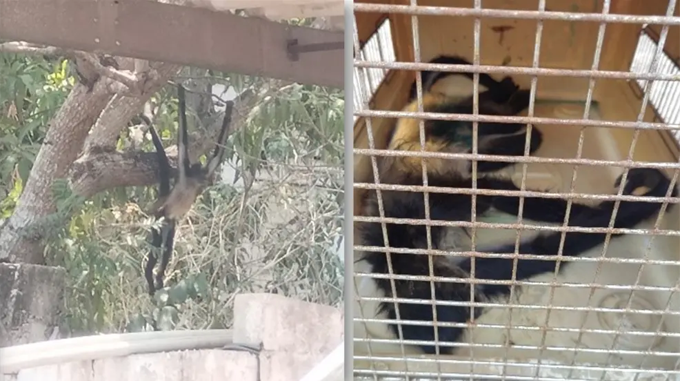 Logran rescatar a mono araña en Mérida por personal de Profepa