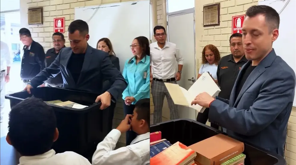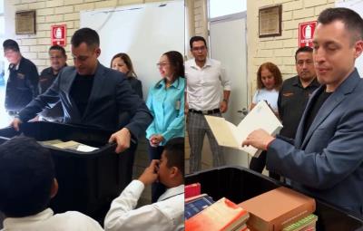 Luis Donaldo Colosio dona libros de sus padres a escuelas de Nuevo León