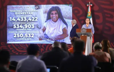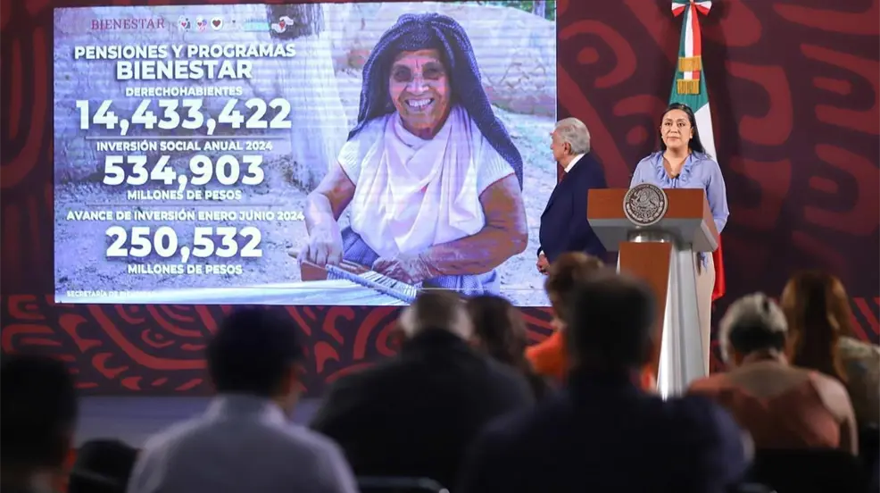 Ariadna Montiel destacó que las Pensiones y Programas de Bienestar suman 14 millones 433 mil 422 derechohabientes, con inversión social anual en 2024 de 534 mil 903 millones de pesos, y a junio de este año se han dispersado 250 mil 532 millones de pesos; todos los derechohabientes y beneficiarios reciben su apoyo a través de la tarjeta del Banco del Bienestar de manera directa y sin intermediarios.