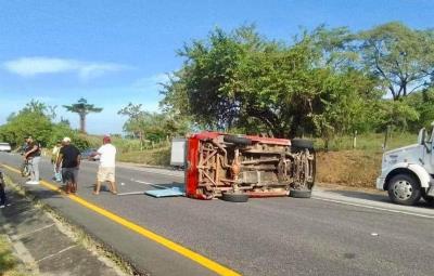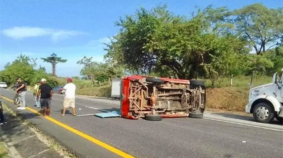 PIJIJIAPÁN, Chiapas.- Un grupo de 18 personas de nacionalidad china sufrieron un accidente cuando viajaban de forma ilegal a bordo de un vehículo tipo Pick Up de color roja y para evitar ser visto cubría con una lona la redila.