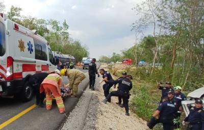 El aparatoso accidente ocurrió a la altura del kilómetro 197 de la carretera Cancún-Mérida donde la camioneta Town & Country, con placas del estado de Quintana Roo, se salió de la carretera cuando el conductor perdió el control del volante.