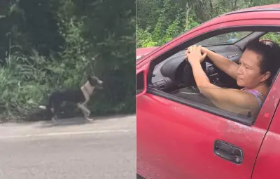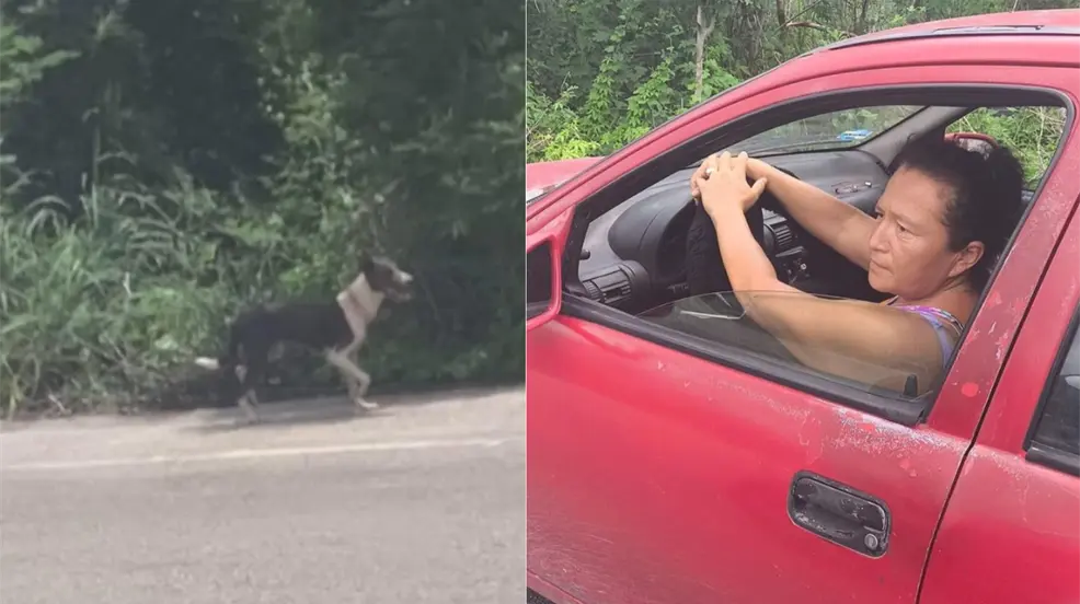 La fémina y su acompañante al ser descubiertos dijeron a los vecinos que el can no era suyo mientras el perrito la perseguía detrás de su auto