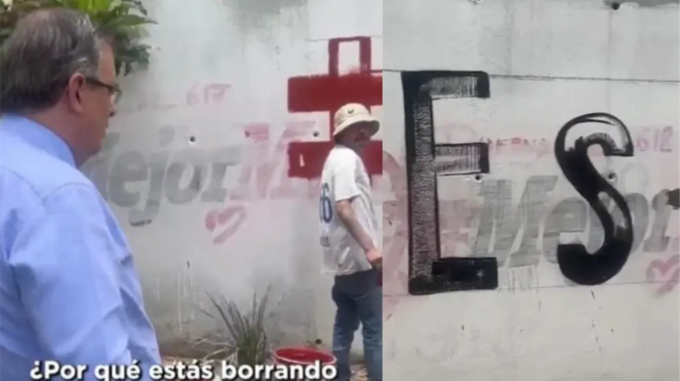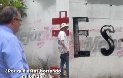 ¿Por qué estás borrano mi barda?”, Ebrard reclama por pinta a favor de Sheinbaum