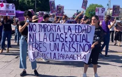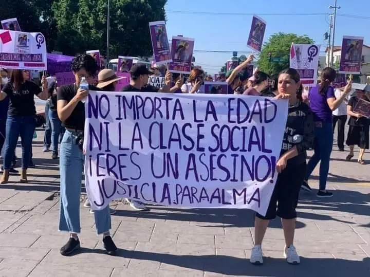 Manifestantes exigen máxima pena por acoso sexual y feminicidio en protesta en Cajeme, Sonora, contra el asesino de Alma Lourdes.