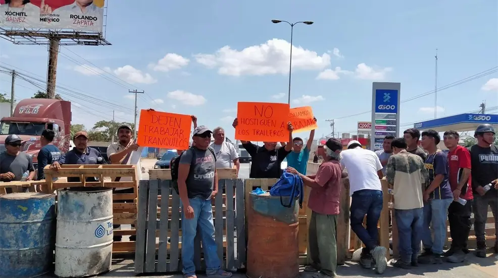 Un grupo de comerciantes y traileros se manifestó contra las autoridades de Umán