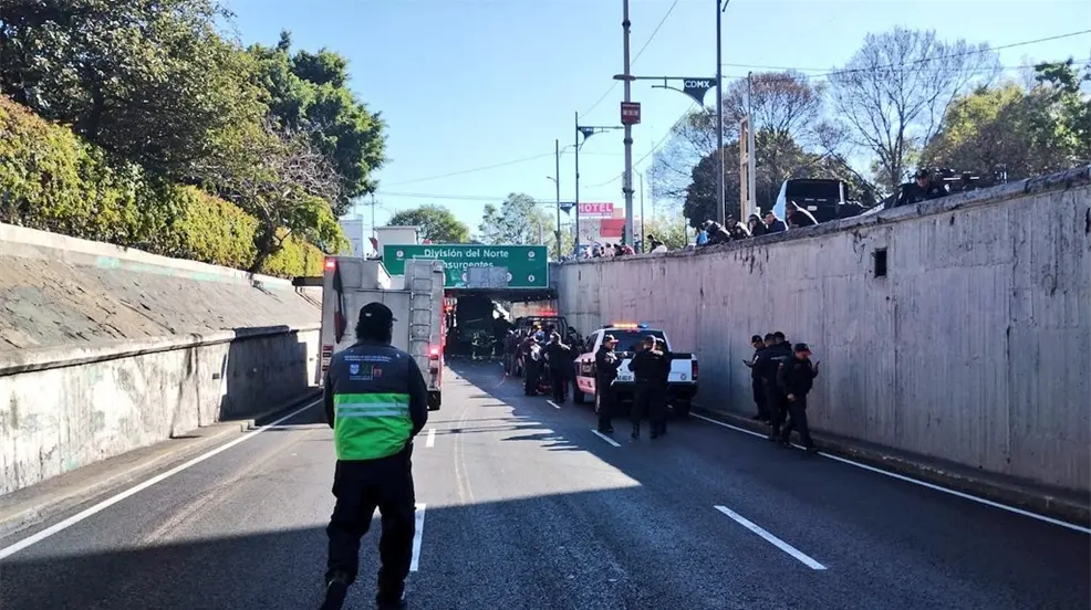 Este incidente que pudo rayar en lo inverosímil se registró en Viaducto Miguel Alemán e Insurgentes, en la Ciudad de México, pues el camión se quedó atorado, y este incidente dejó al menos 16 heridos.
