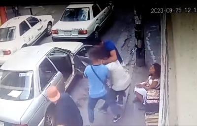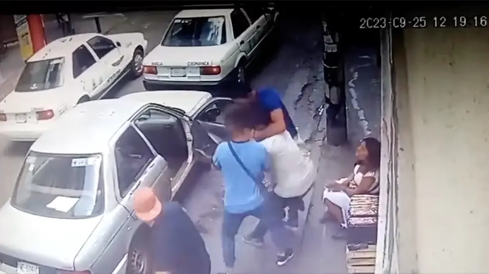 Las imágenes muestran cómo varios individuos descienden de un automóvil y se acercan rápidamente a una pareja.