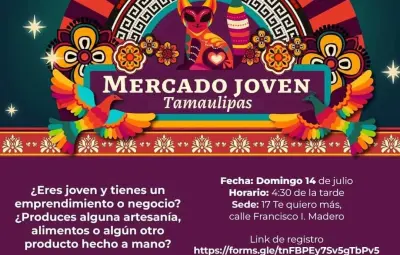 CIUDAD VICTORIA, Tamaulipas.- Mercado joven Tamaulipas es una plataforma para todos aquellos jóvenes emprendedores que deseen hacer crecer sus ideas y negocios y se llevará a cabo el Domingo 14 de julio.