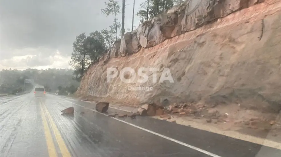 El derrumbe se encuentra aproximadamente en el kilómetro 160, sobre el carril que va con dirección de Durango rumbo a Mazatlán.