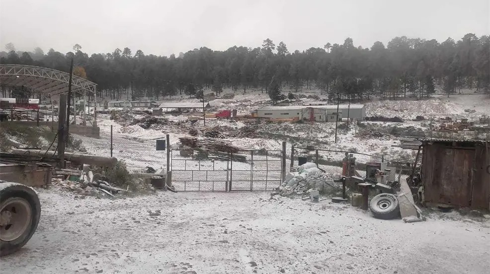 Se reporta la caída de nieve en la zona de la sierra debido a la llegada del Frente Frío No. 11 que trajo la primera tormenta invernal de la temporada.