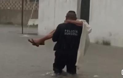 Ante la situación, la policía municipal implementó un operativo para restringir el acceso a las calles inundadas y rescatar a personas atrapadas.