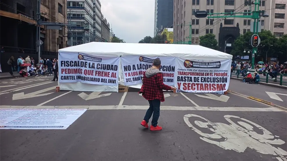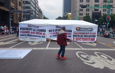 De manera simultánea, los comerciantes mantienen bloqueo en Izazaga y 20 de noviembre, Nezahualcóyotl y 20 de noviembre y Eje Central a la altura de la avenida Juárez, donde en este último punto han colocado una carpa y logística para permanecer el tiempo que sea necesario dicen, hasta que autoridades les den solución a sus demandas.