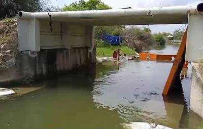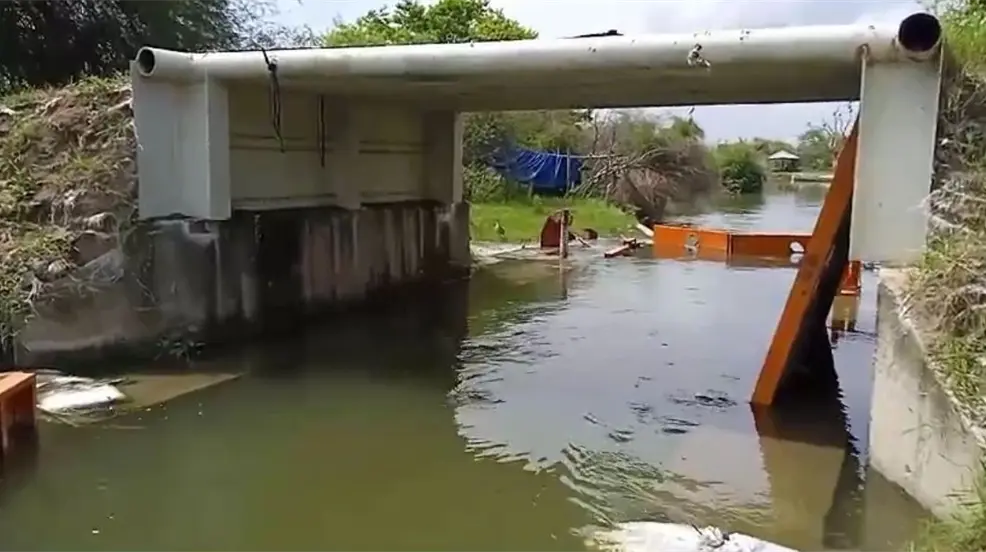 Altamira, TAMAULIPAS.- Las compuertas del Estero Camalote, ubicado en Mata de la Monteada, han sufrido una rotura significativa que lleva un mes sin ser reparada, generando una creciente preocupación entre los residentes del sur de Tamaulipas.