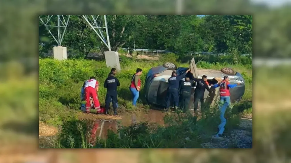 MÉRIDA, Yucatán.- Esta mañana, una familia vivió un momento de angustia al volcar el vehículo en el que viajaban en la autopista Mérida-Cancún. El accidente ocurrió en el kilómetro 157+500, cuando el conductor perdió el control del auto por razones aún desconocidas, lo que provocó que el vehículo se saliera de la carretera y diera varias volteretas antes de quedar volcado sobre su lado derecho.