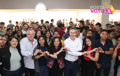 Durante el encuentro, los jóvenes tuvieron la oportunidad de dialogar con los candidatos y expresar su apoyo al proyecto de consolidar el segundo piso de la Cuarta Transformación, impulsado por MORENA, PT y Partido Verde Ecologista.