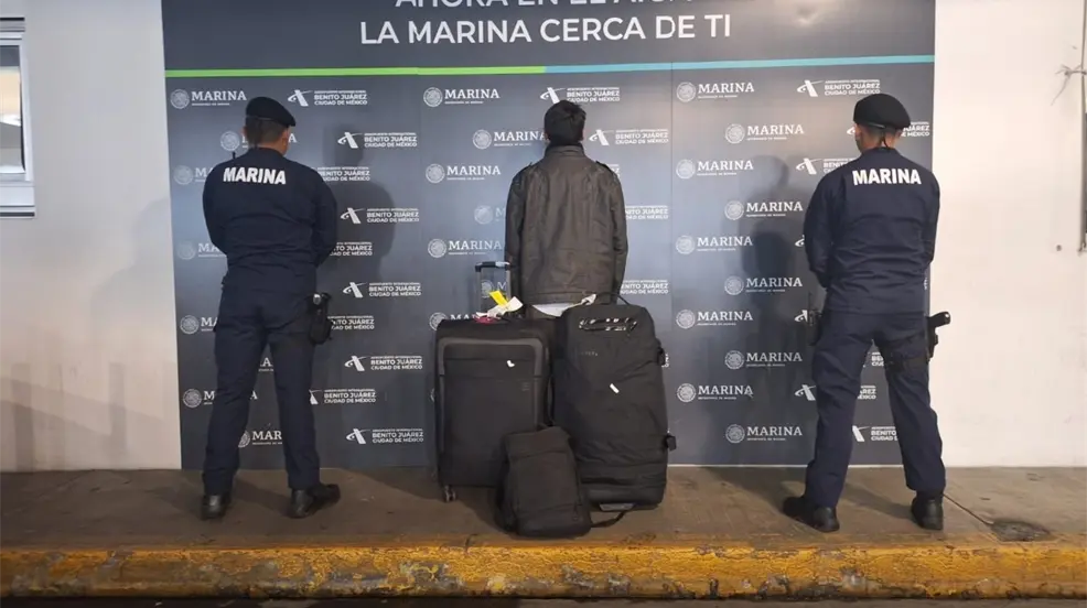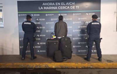 Secretaría de Marina detiene a dos personas por posesión de drogas en el AICM