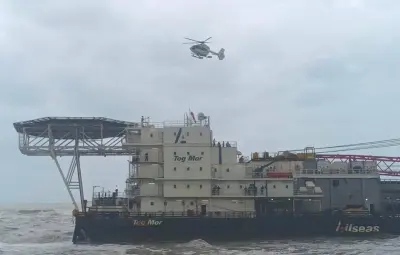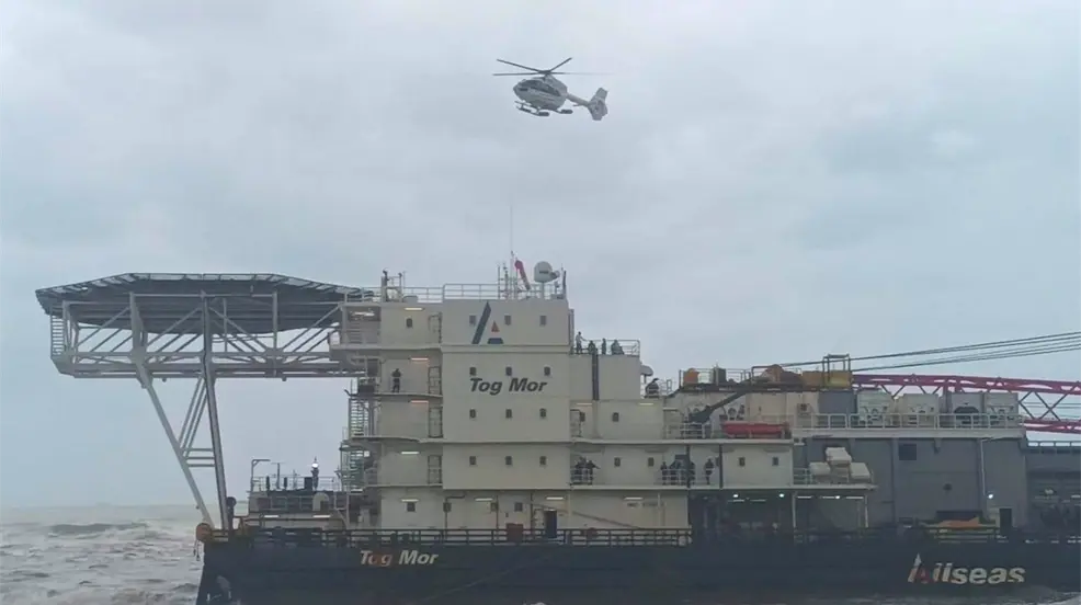 A casi 20 horas de que el "Tog Mor" encallara frente a Villa Allende, toda la tripulación fue rescatada por dos helicópteros y puesta a salvo antes de la latente amenaza de que empeoraran las condiciones climatológicas en las aguas del Golfo de México.