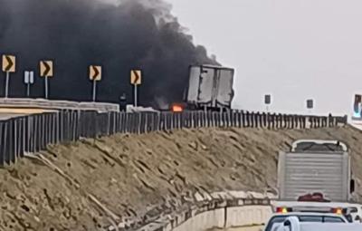 La pesada unidad se incendió tras chocar contra la valla de contención del puente, la cabina quedó entre los puentes de ambos sentidos. El lamentable hecho se ocasionó cuando el conductor del tráiler perdió el control del volante.