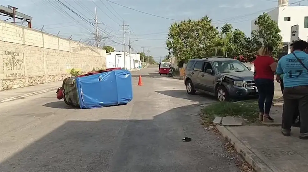 Testigos quienes presenciaron el hecho señalaron que el accidente ocurrió cuando el mototaxi iba sobre la calle 145 del fraccionamiento Las Nubes y al llegar a la calle 48 no respetó una señal de alto, así que fue chocado por una camioneta Escape cuya conductora, tras el impacto, perdió el control del volante. El encontronazo hizo que el mototaxo volcara y la camioneta se estampe contra un muro.