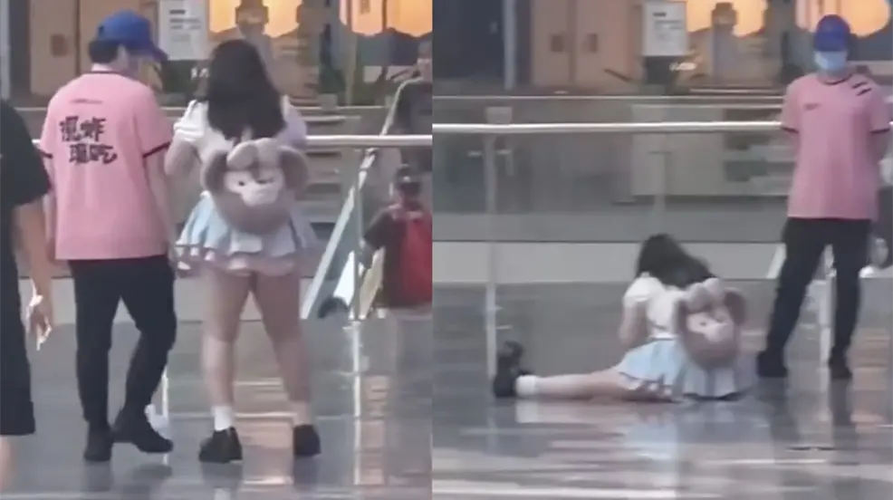 Por su parte, el joven optó por mantenerse quieto mientras ella expresaba su descontento en el suelo. A pesar de los llamativos alaridos, él permaneció de espaldas a la escena, aparentemente calmado ante la situación.