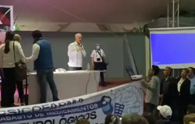 IZTACALCO, CIUDAD DE MÉXICO.- Durante el diálogo 'Recuperación de lo público en salud y bienestar' llevado a cabo en el Faro Recreativo y Cultural Iztacalco, el Subsecretario de Prevención y Promoción de la Salud, Hugo López-Gatell, fue interrumpido por familiares de pacientes psiquiátricos que exigieron atención ante el desabasto de medicamentos.