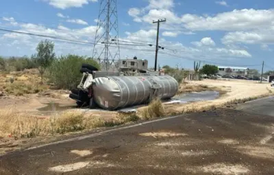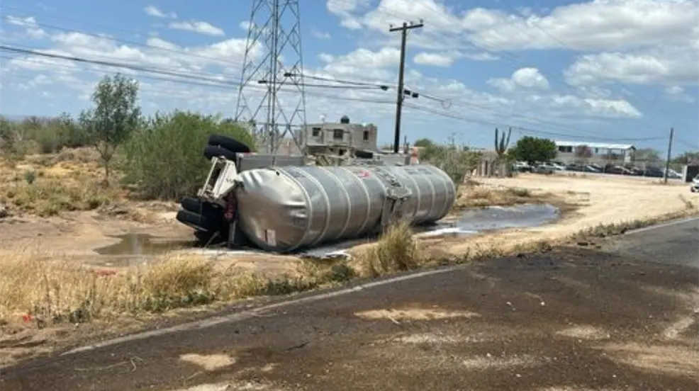 LA PAZ, Baja California Sur.- Esta mañana, 11 de agosto, Protección Civil de La Paz informó sobre un accidente ocurrido en la Carretera Transpeninsular, a la altura de la colonia La Pasión, donde una pipa que transportaba diésel volcó. El vehículo, perteneciente a la transportadora Díaz Álvarez, sufrió el siniestro por razones que aún están bajo investigación.