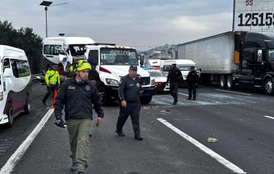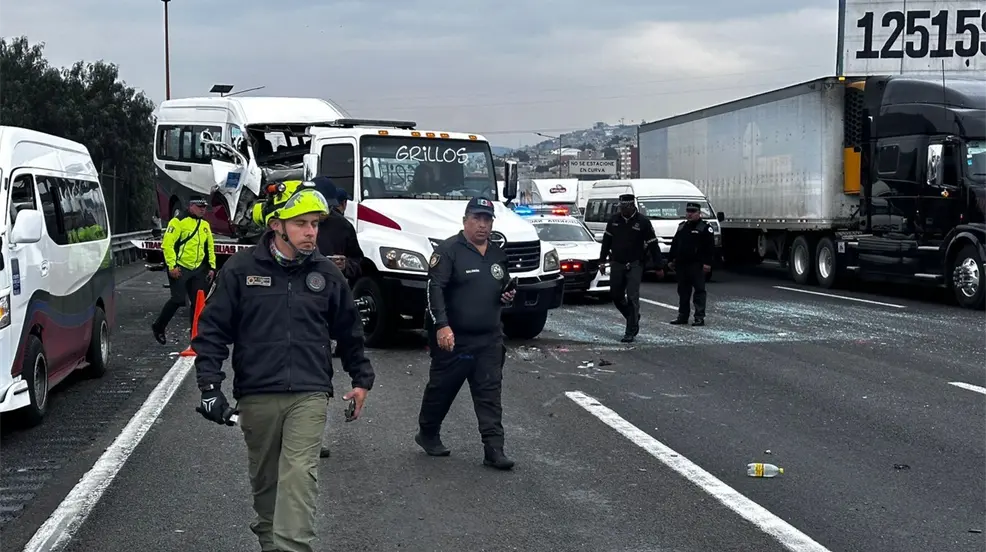 ECATEPEC, Estado de México.- Una persona resultó herida tras la volcadura de una unidad de transporte público en el kilómetro 18 de la autopista México-Pachuca en Ecatepec.