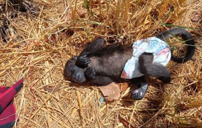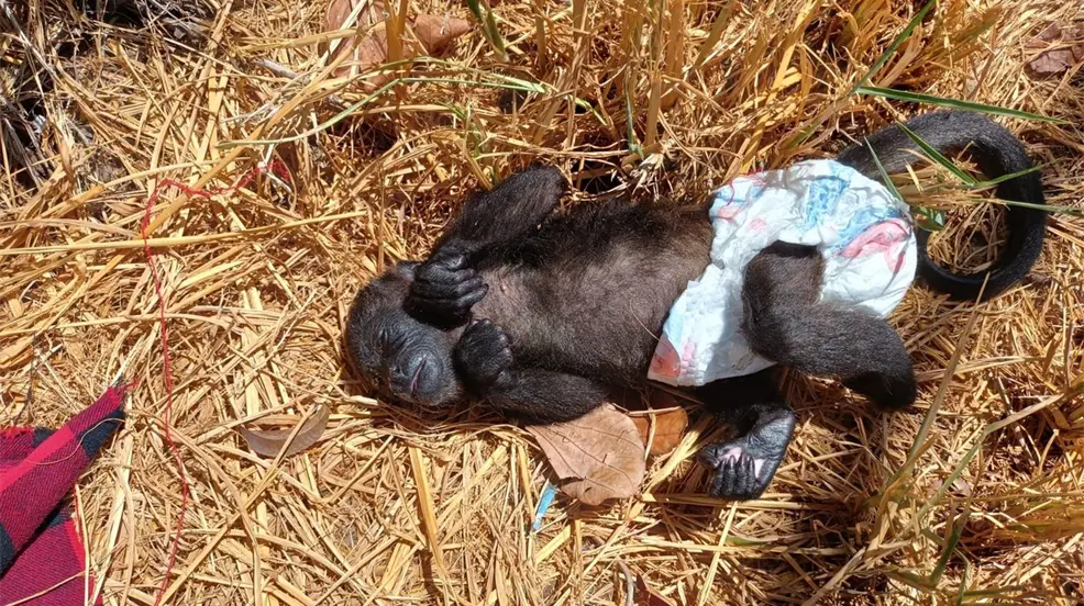 A través de redes sociales, vecinos del sur de Monterrey denunciaron el abandono de un pequeño mono abandonado entre la maleza de un terreno baldío de la colonia Valle Alto.