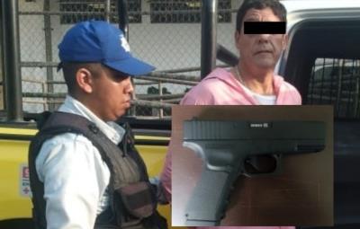 Ahí pasaban oficiales municipales, quienes ante las señales de auxilio, detuvieron a Eduardo "R"., encontrándole el arma que era de réplica con un cargador.