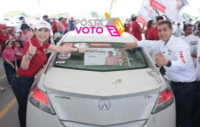 La fila de autos se extendió a lo largo de la avenida principal, donde las familias juarenses demostraron su respaldo al abanderado de la coalición Fuerza y Corazón por Nuevo León, integrada por el PRI, PAN y PRD.
