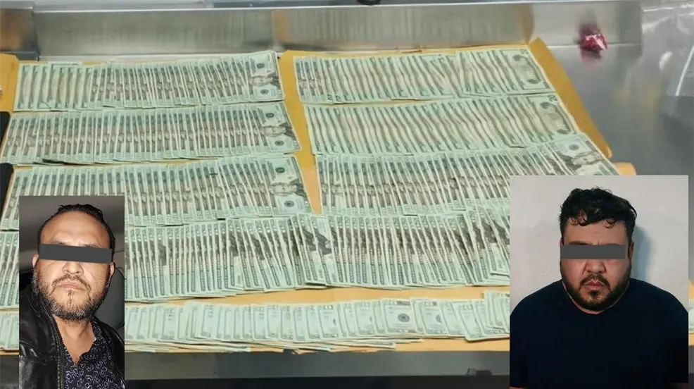 Al primero se le encuentra una bolsa negra con 15 envoltorios tipo ziploc con sustancia parecida a la cocaína en piedra, 25 envoltorios con cocaína, 12 envoltorios con marihuana, una báscula digital, 7 mil 500 dólares y un arma tipo escuadra y 10 cartuchos hábiles.