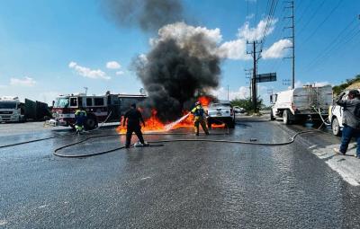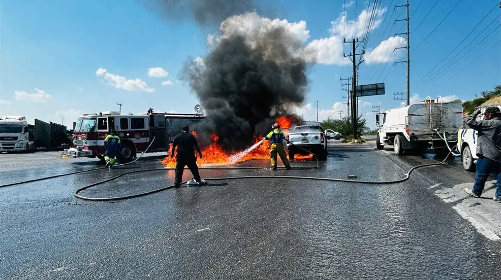 Incendio de vehículo en Pesquería: Bomberos y Rescatistas actúan rápido