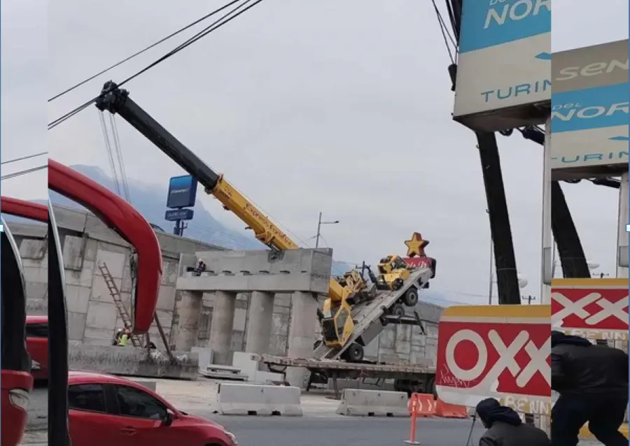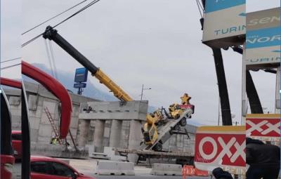 SANTA CATARINA, Nuevo Leíon.- Un incidente ocurrido en Santa Catarina, Nuevo León, donde una mala maniobra de una grúa causó la caída de una viga en la construcción del mega puente.